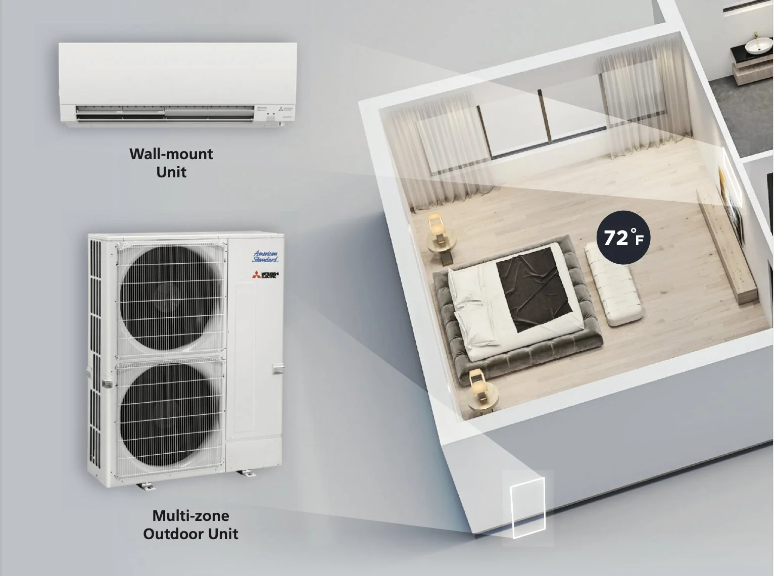 American Standard’s ductless air conditioning and heat pump systems are made for the homeowner who wants reliable heating & cooling as the traditionally ducted home with flexibility to do it in spaces where ductwork is not an option. It also allows flexibility of adjusting each room’s temperature separately.